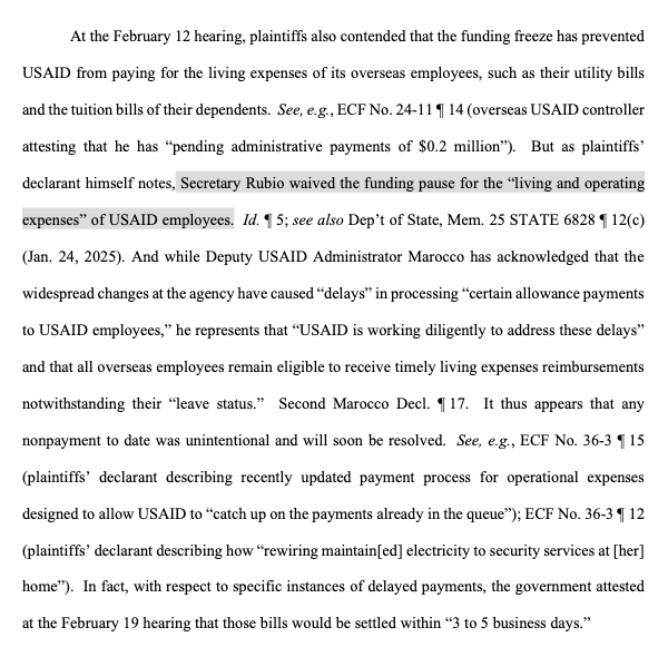 The statement critiques the plaintiffs' claims in a legal case involving USAID, suggesting that some claims were exaggerated or false. It highlights the court's findings that the alleged harms were not as severe as claimed.