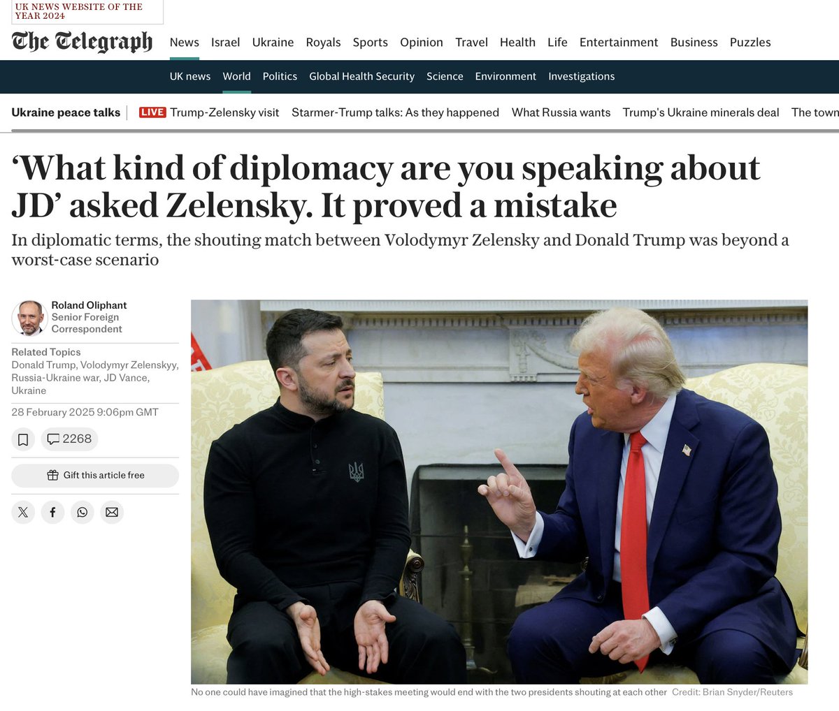 The statement and accompanying images engage in public discourse by discussing international relations, diplomacy, and public opinion regarding the Ukraine-Russia conflict. The tone is critical and suggests a disconnect between European and American perspectives, as well as between leadership and public opinion.