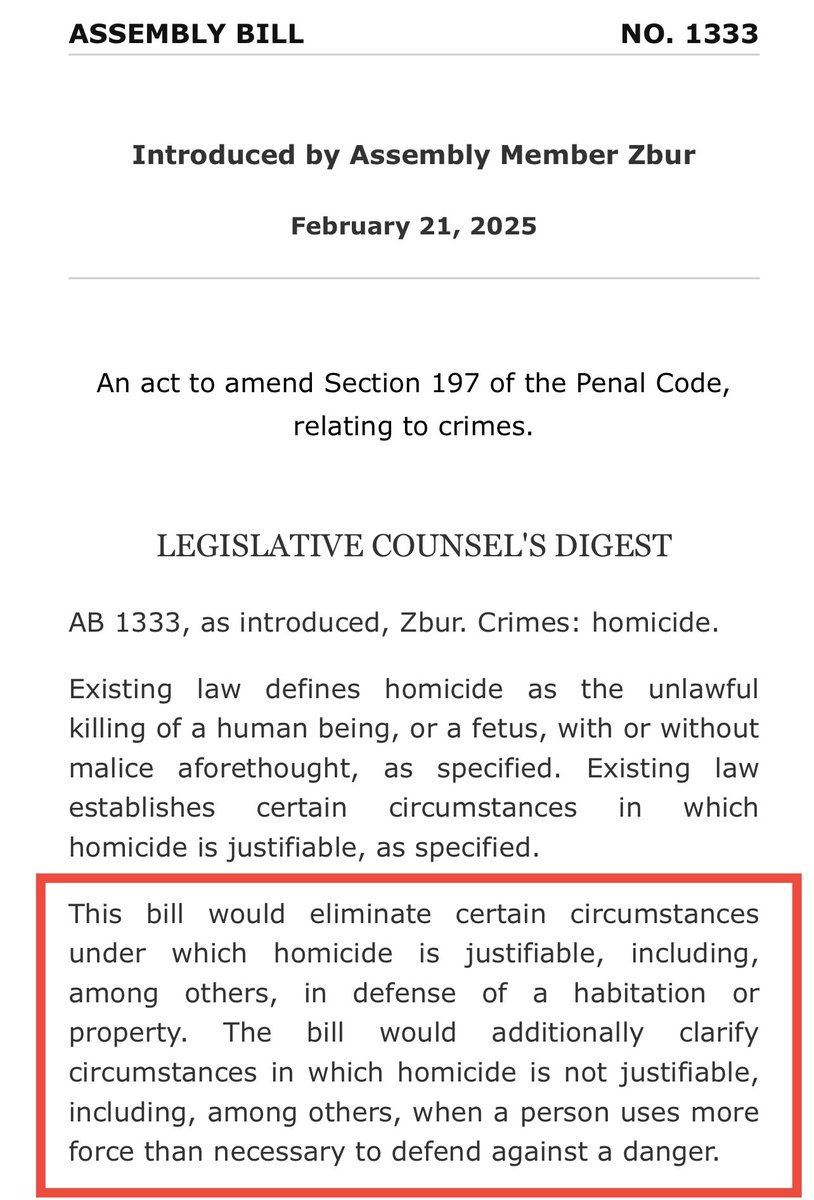 The statement and images engage in public discourse by discussing legislative changes related to self-defense laws in California, which is a public issue. The tone suggests skepticism and concern about the implications of the bill, implying it could criminalize self-defense. The statement aims to inform and possibly alarm the public about potential changes in legal rights.