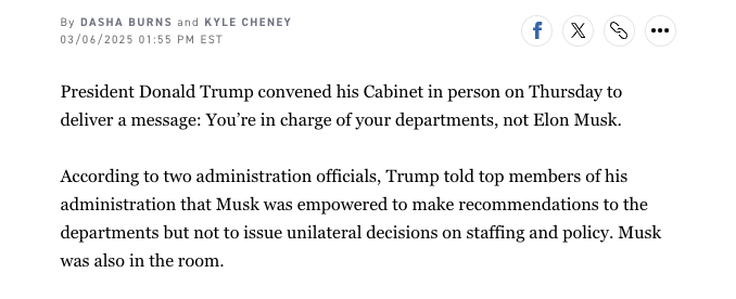 The statement and accompanying images discuss administrative decisions and leadership dynamics within the U.S. government, involving public figures and policy directions. This constitutes public discourse as it addresses governance and public administration issues.