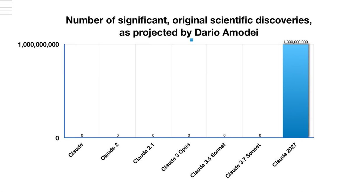 The statement engages in a debate about the potential of AI to make significant scientific discoveries, challenging the optimistic projections of AI capabilities. It uses a respectful tone while disagreeing with the previous assertion.