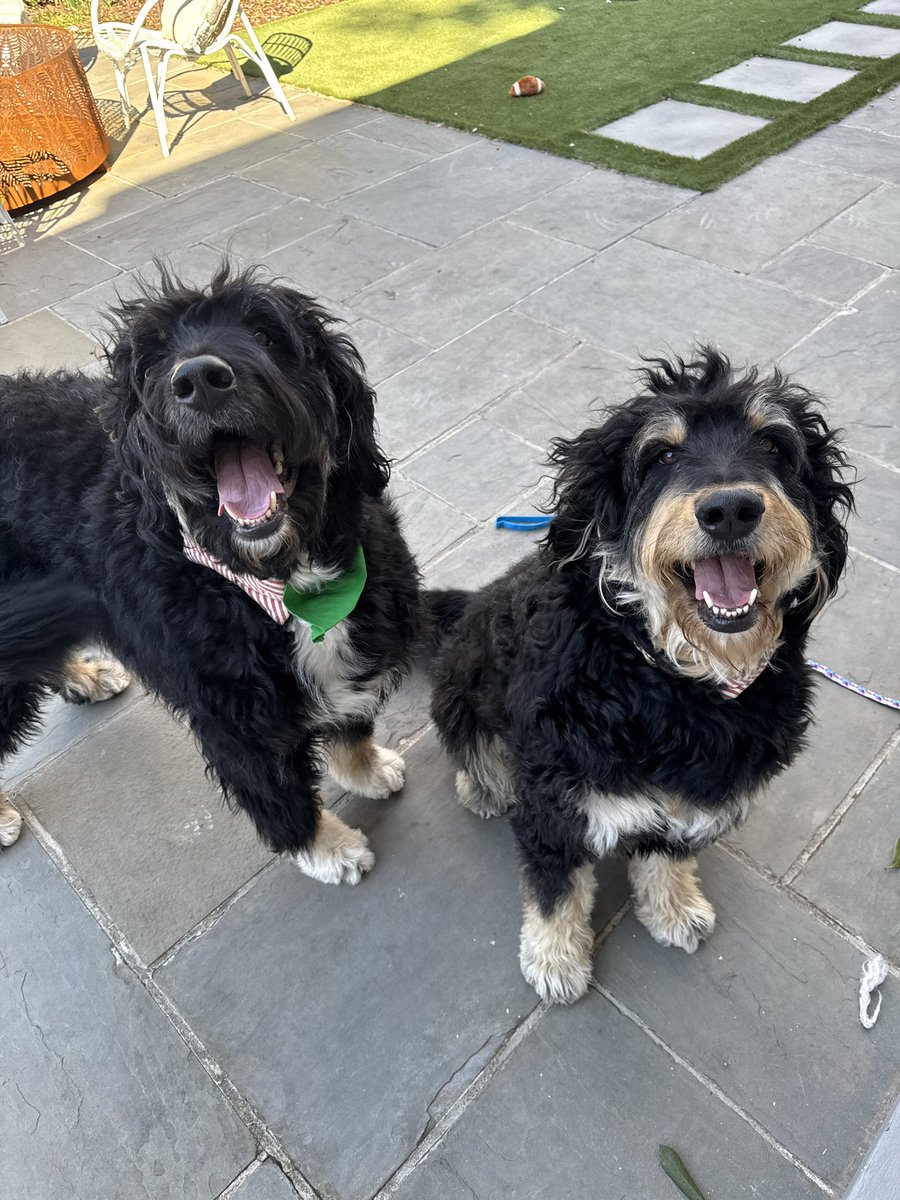 The statement 'Bear and Moose' accompanied by an image of two dogs is lighthearted and does not engage in public discourse. It appears to be a playful or affectionate reference to the dogs in the image.