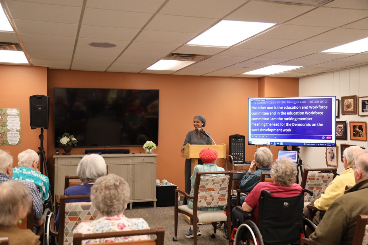 The statement discusses a visit to senior residents and addresses public issues related to healthcare and Social Security, criticizing the Trump Administration's policies. The tone is proactive and community-focused.