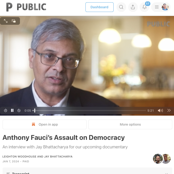 The statement engages in public discourse by discussing the credibility and impact of public health figures and policies during the COVID-19 pandemic. It presents a critical view of Anthony Fauci's arguments and supports Jay Bhattacharya's views, suggesting a vindication of the latter's stance. The tone is assertive and somewhat confrontational, implying a clear division between 'right' and 'wrong' perspectives.