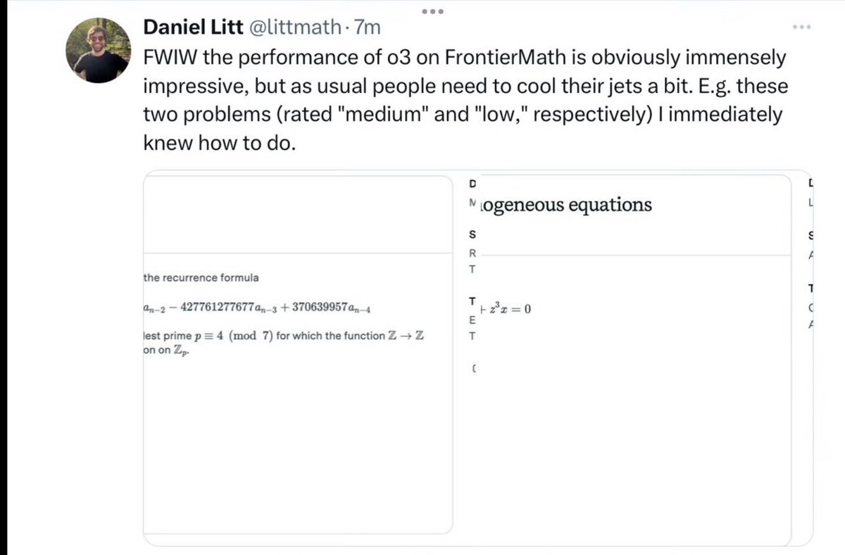 The statement is part of a technical discussion about the performance of a mathematical model, o3, on FrontierMath. It critiques the model's performance and suggests a need for caution in interpreting results. The tone is analytical and slightly critical, focusing on the model's ability to handle false alarms and questioning a participant's view on o3.