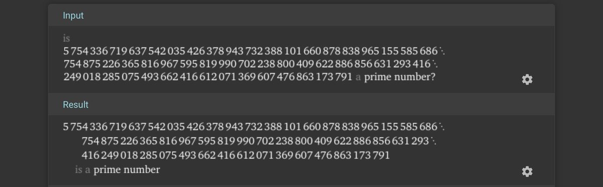 The statement is part of a lighthearted conversation about checking prime numbers using different tools. It expresses trust in Wolfram Alpha's accuracy in a humorous context.