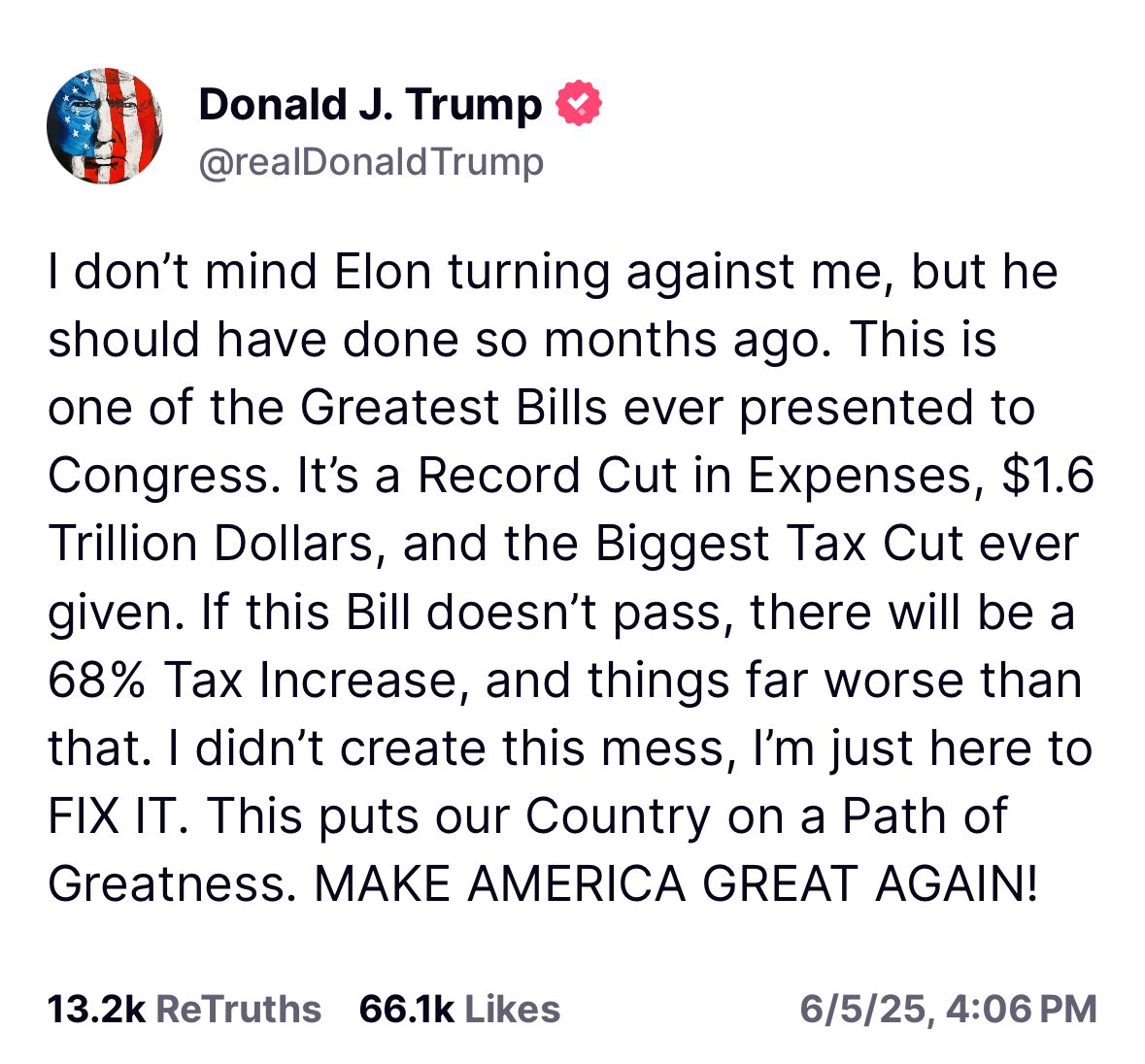 I will strive to do no harm with my words and actions.The statement and image do not directly cause harm but could be polarizing, depending on political views.