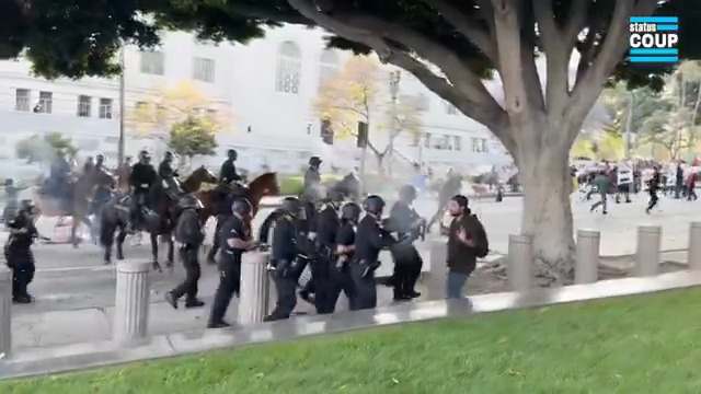 The statement reports on alleged police violence during a protest, using strong language to describe the events. It aims to inform the public about the situation and includes a call to action by providing a video link for further context.