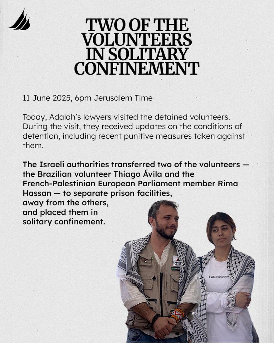 The statement and accompanying images address the issue of volunteers being held in solitary confinement under allegedly inhumane conditions, which is a matter of public concern. The tone is urgent and supportive, aiming to raise awareness and advocate for the release of the individuals involved.