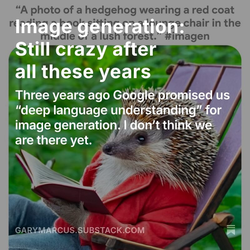 The statement critiques the progress of AI in language understanding for image generation, suggesting it hasn't met expectations. It references a promise by Google and expresses skepticism about current capabilities.