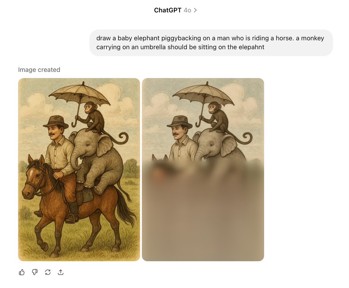 The conversation is lighthearted and revolves around the humorous and creative use of AI to generate images based on whimsical prompts. It involves sharing and comparing AI-generated images, focusing on the accuracy and creativity of the outputs. The tone is playful and informal, with no engagement in public issues or debates.