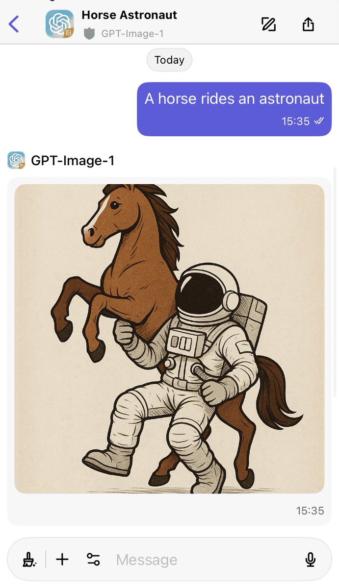 The statement is a lighthearted and humorous response to a playful conversation about an image of a horse and an astronaut. It does not engage in public discourse or address societal issues.