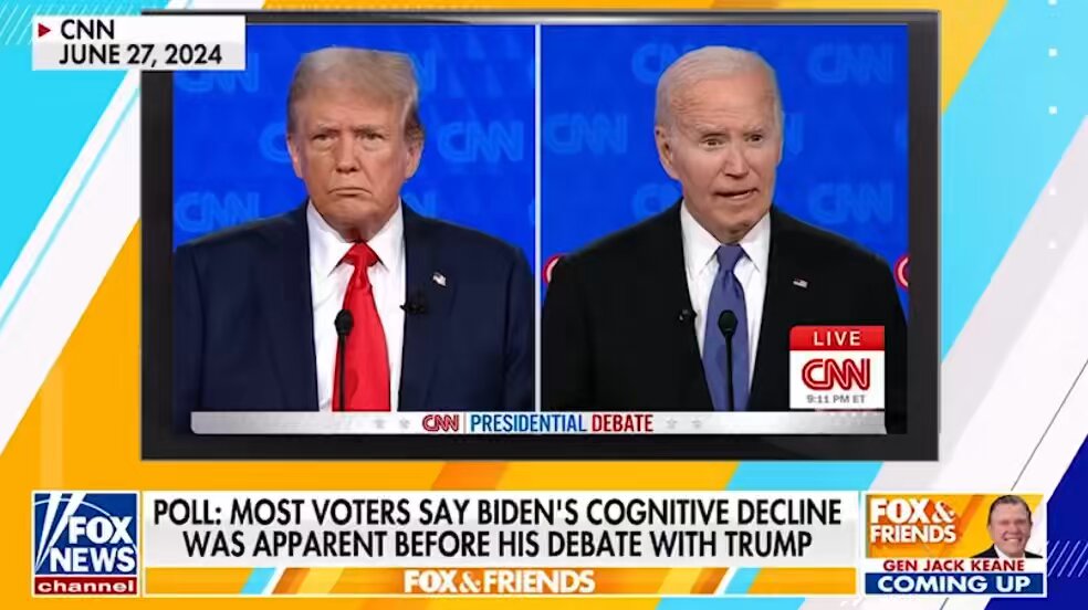 The statement and image suggest a political opinion about a past debate's impact on an election outcome. It implies a negative view of one candidate's cognitive abilities, which can be seen as disrespectful and potentially harmful.