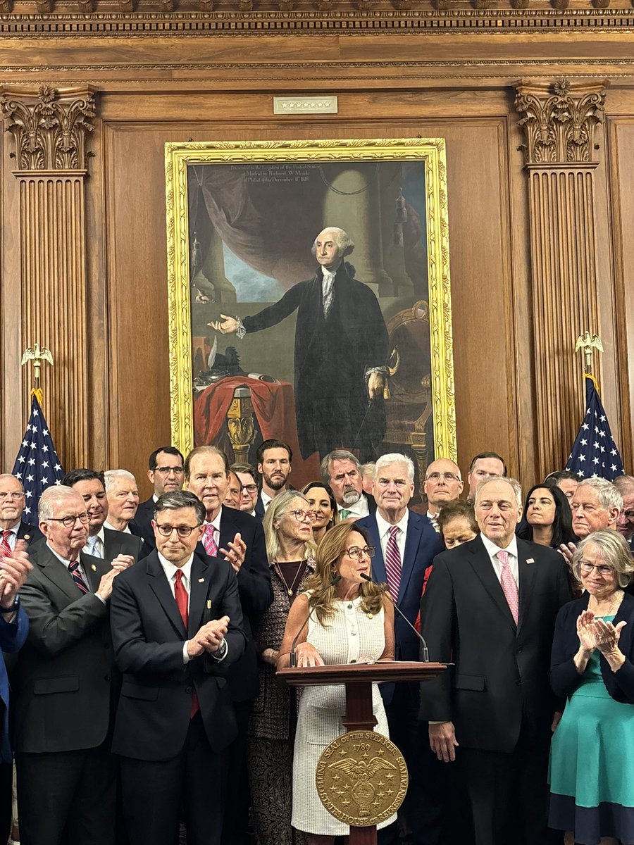 The statement is promotional, highlighting a legislative achievement by the House GOP and inviting the public to learn more about it. It uses positive language to describe the bill's impact on American workers, families, seniors, and small businesses, and it appeals to patriotic sentiments by referencing the 'American Dream.'
