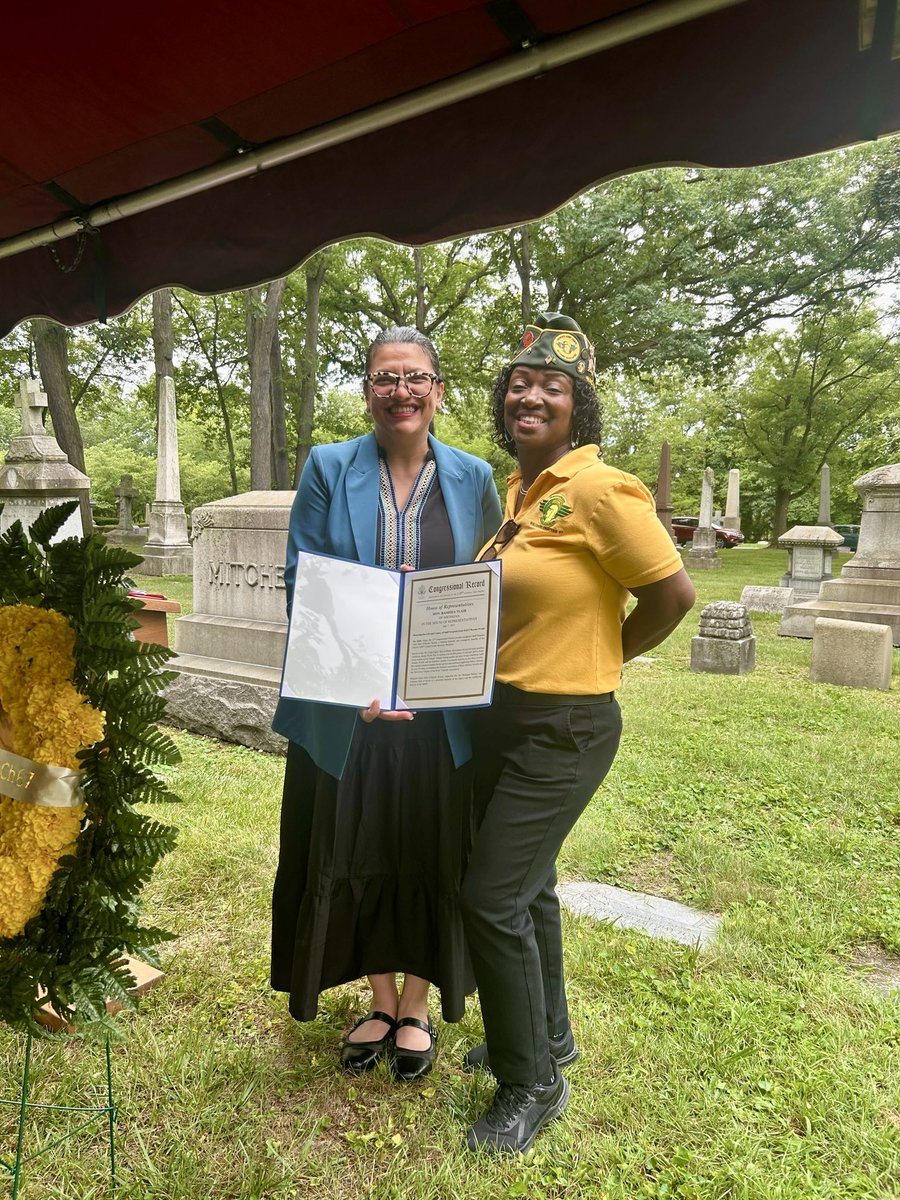 The statement honors the legacy of WWII Staff Sergeant Essie Dell O’Bryant Woods, highlighting her role in the all-Black women’s unit, the 6888th. It promotes historical recognition and respect for her contributions.