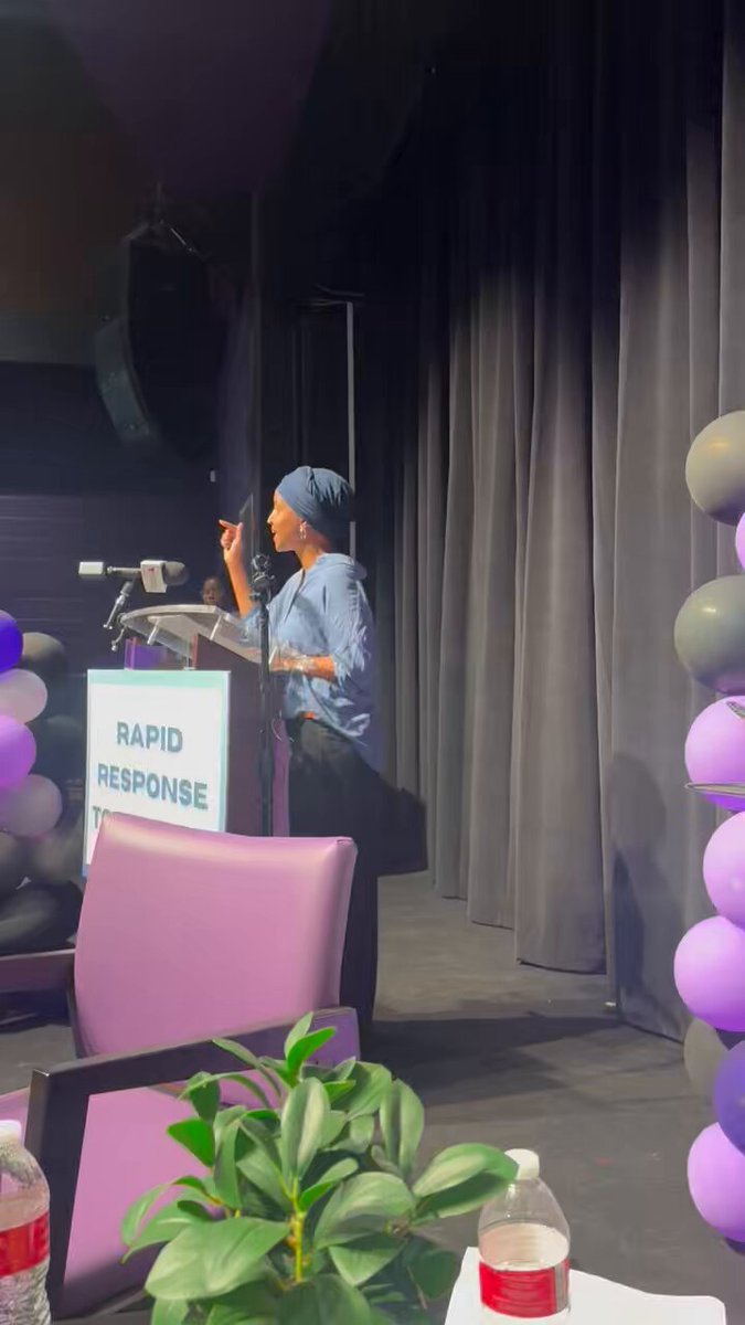 The statement discusses a public event and criticizes a public official for not engaging with constituents, highlighting the importance of democratic participation.