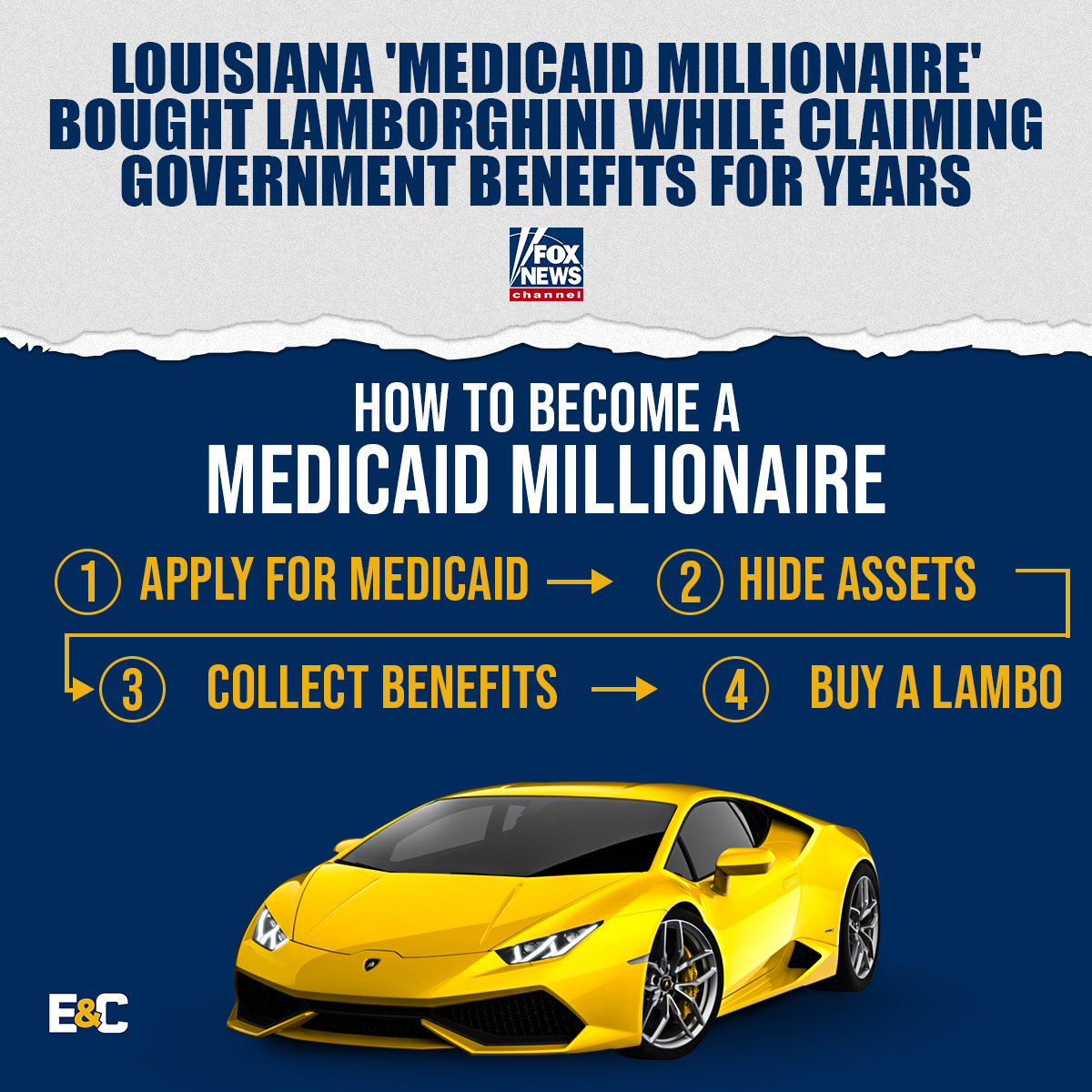 The statement and image address the issue of Medicaid fraud and propose a legislative solution. The tone is critical of those who exploit the system and supportive of measures to prevent abuse. The image uses satire to emphasize the problem of fraud.