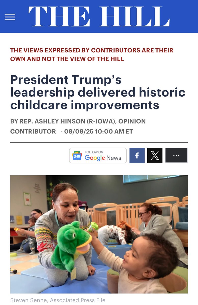 The statement discusses the issue of childcare costs and credits President Trump and Republicans for addressing it. It is promotional in nature, highlighting political achievements.