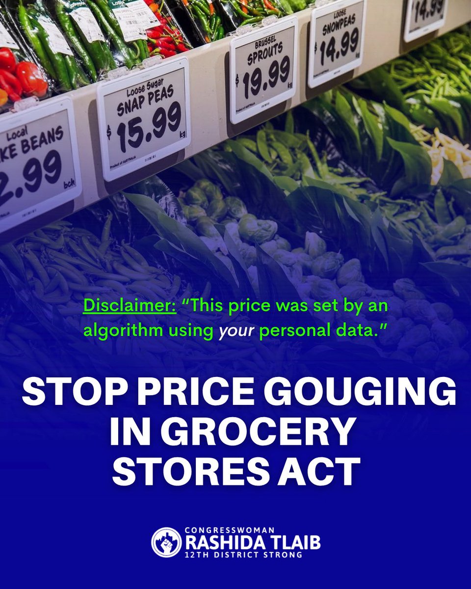 The statement and linked content discuss a legislative proposal to address price gouging in grocery stores, a public issue affecting consumers. The tone is assertive, aiming to inform and advocate for consumer protection.