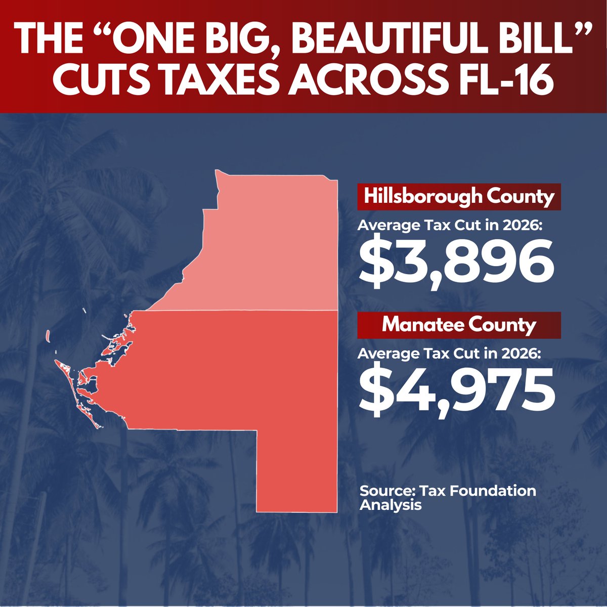The statement discusses a tax bill and its impact on specific counties, providing data on average tax cuts. It aims to inform the public about the financial benefits of the bill, referencing an analysis by the Tax Foundation.