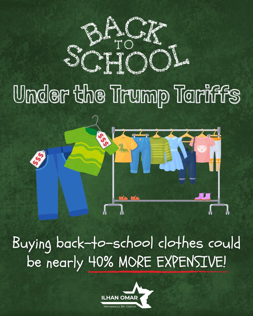 The statement criticizes the economic policies under Trump's administration, specifically focusing on tariffs and their impact on the cost of back-to-school clothing. It aims to highlight the financial burden on working families and calls for policy change to reduce costs.
