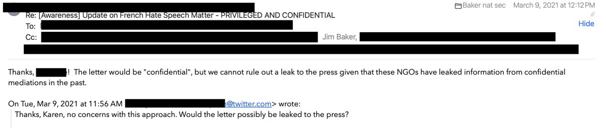 The statement and accompanying images discuss legal proceedings involving Twitter France and its compliance with legal requests, touching on issues of public order and moderation. This constitutes public discourse as it engages with legal and societal issues.