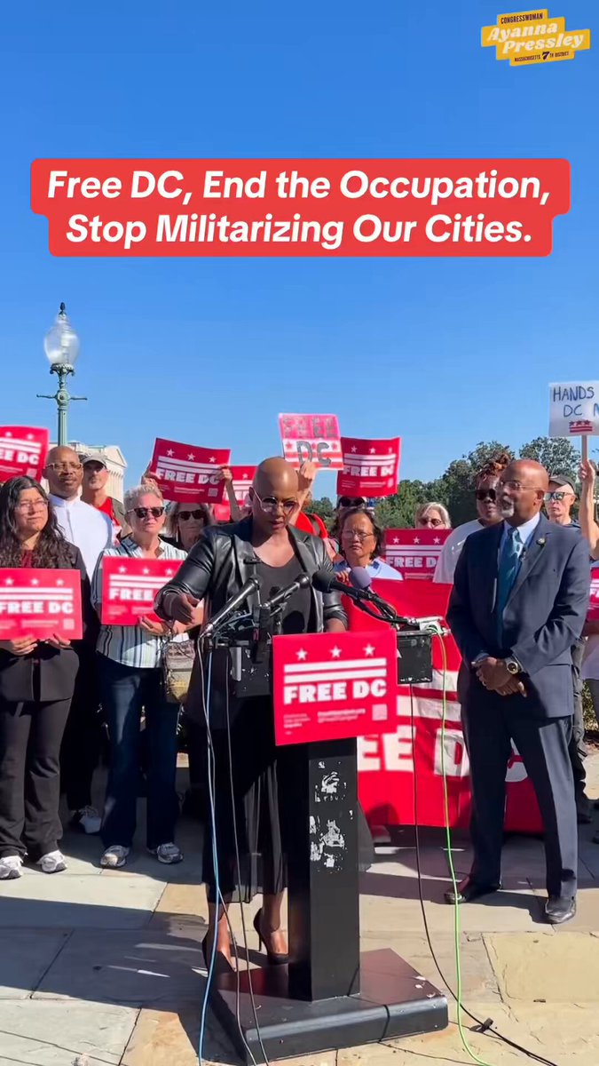 The statement criticizes the militarization of Washington D.C., attributing it to racism, fear, and intimidation rather than public safety. It is a strong opinion on a public policy issue, reflecting concerns about civil rights and government actions.