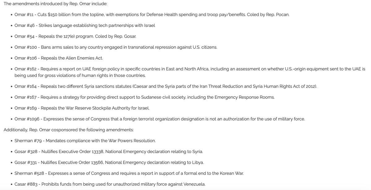 The statement criticizes the allocation of funds to the Pentagon and proposes amendments to reduce spending and prioritize human rights. It aims to engage in public discourse about defense spending and foreign policy.