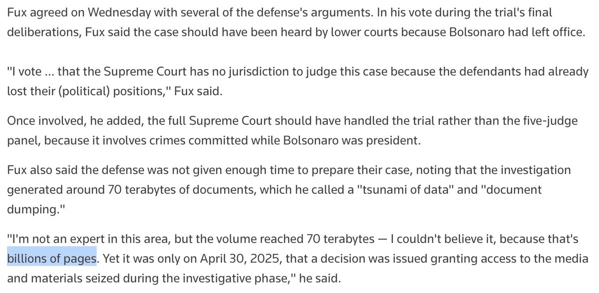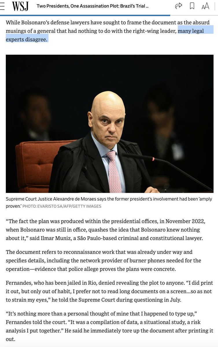 The statement and images engage in public discourse by discussing the legal proceedings and media coverage surrounding former President Bolsonaro's alleged coup plot. The tone is critical and dismissive, using terms like 'kangaroo court' and 'nothingburger' to undermine the legitimacy of the trial and media reports.