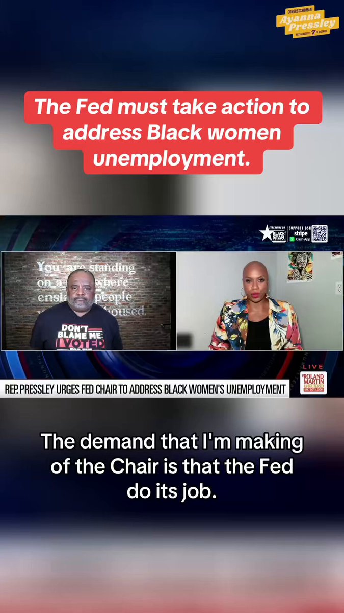 The statement addresses the issue of unemployment among Black women, attributing it to actions by Trump and calling for intervention by the Federal Reserve. It highlights a societal concern and calls for policy action.