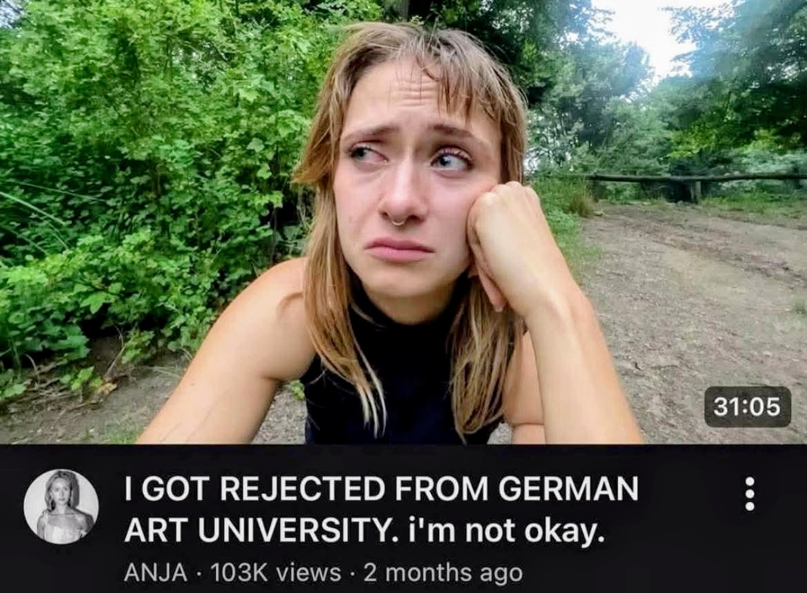 The statement is lighthearted and seems to be a humorous or sarcastic response to a situation involving rejection from an art university. It does not engage in substantive public discourse or address societal issues.