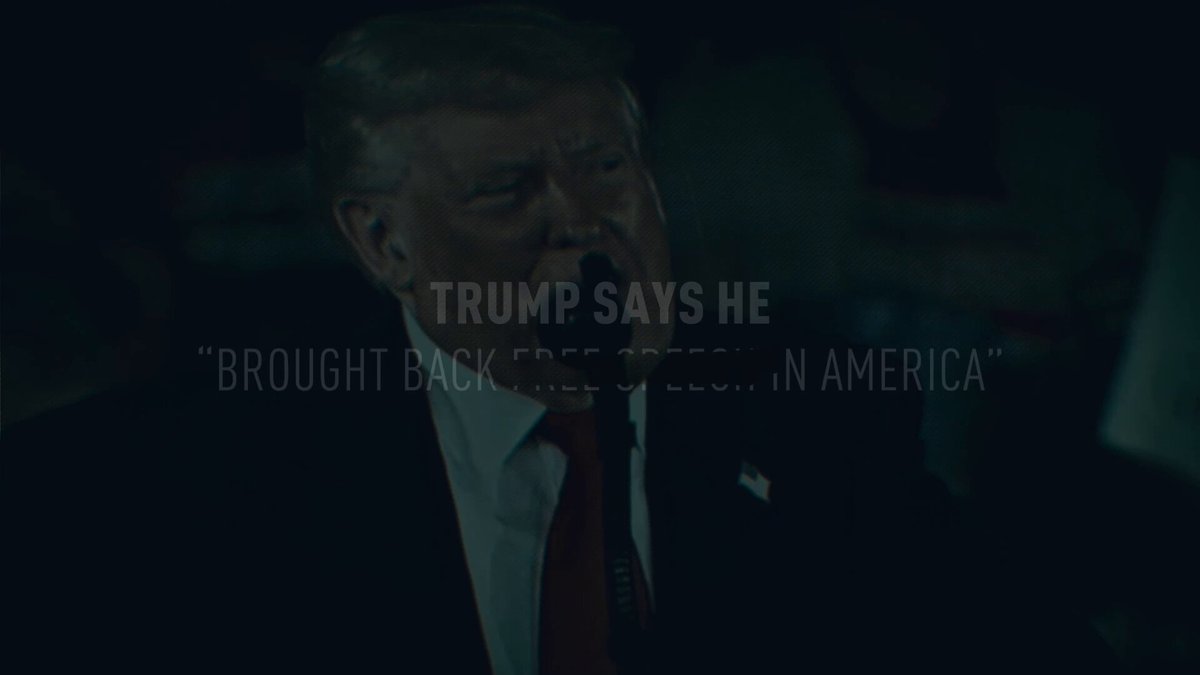 The statement is a critical opinion on Donald Trump's actions regarding the First Amendment, suggesting he is undermining it. The tone is accusatory and intended to alert the public to perceived threats to free speech.