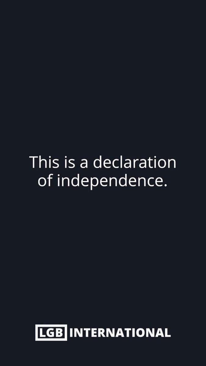 The statement announces the launch of a new organization, LGB International, in collaboration with 17 other national LGB organizations. The accompanying image emphasizes a 'declaration of independence,' suggesting a focus on autonomy and self-determination for the LGB community.