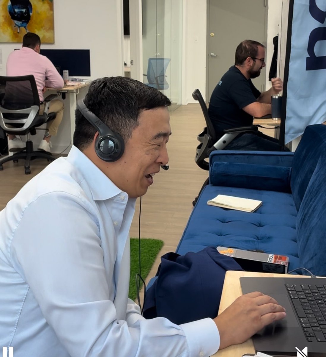 The statement is lighthearted and promotional, highlighting a personal experience of engaging with customers. It emphasizes the human aspect of the company, suggesting a positive and approachable work environment. The use of emojis adds a cheerful tone.