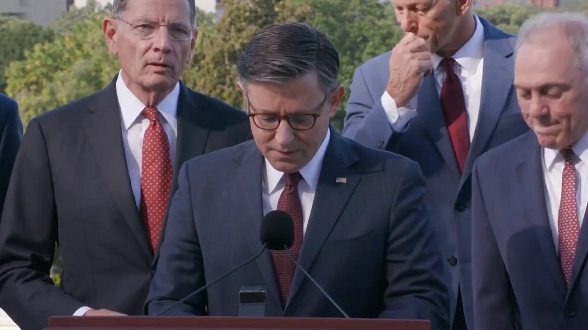 The statement is politically charged, using strong language to criticize the opposing party. It frames the situation as a conflict between parties, with an emphasis on unity within the GOP and accusations against Democrats. The use of terms like 'hostage' and 'wild partisan demands' suggests a confrontational tone.