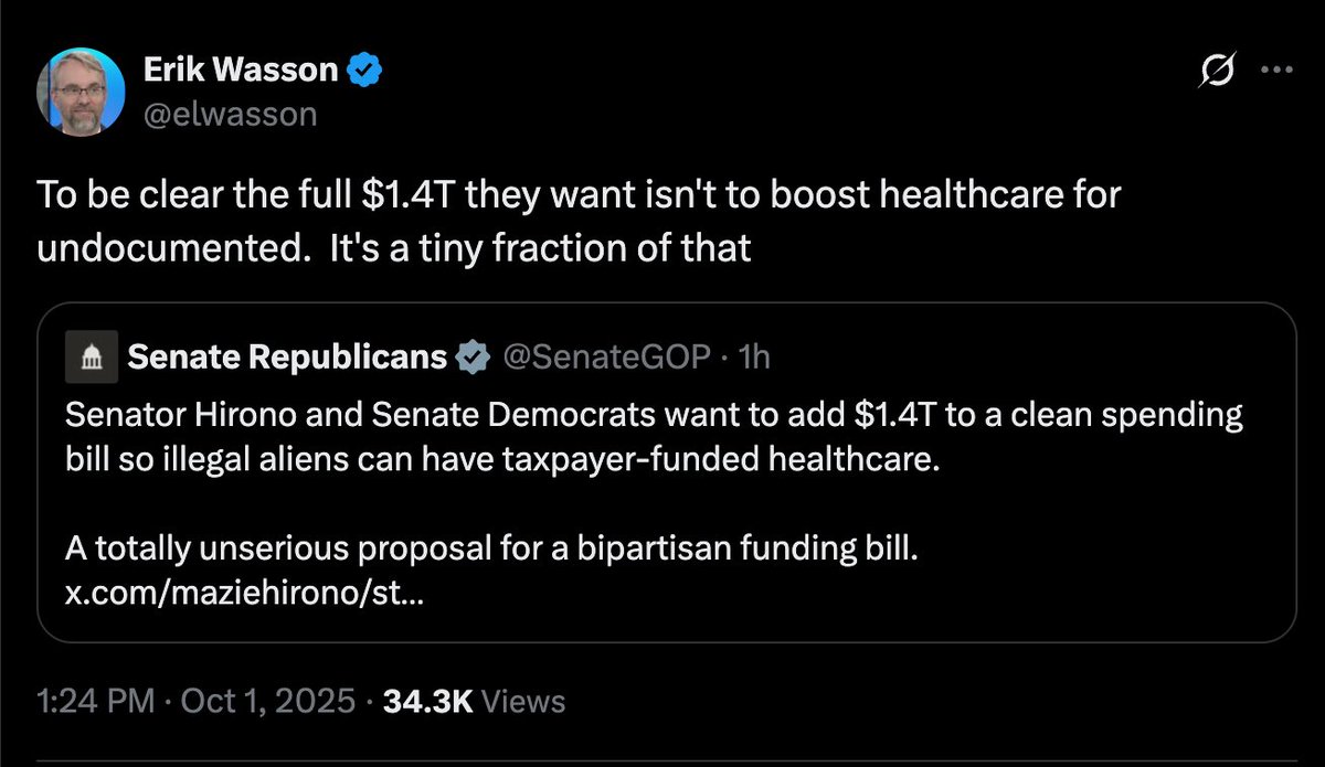 The statement and image engage in public discourse by discussing government spending and healthcare for undocumented immigrants, a contentious political issue. The tone is critical and potentially misleading, using charged language like 'ransom money' and 'illegal aliens.'
