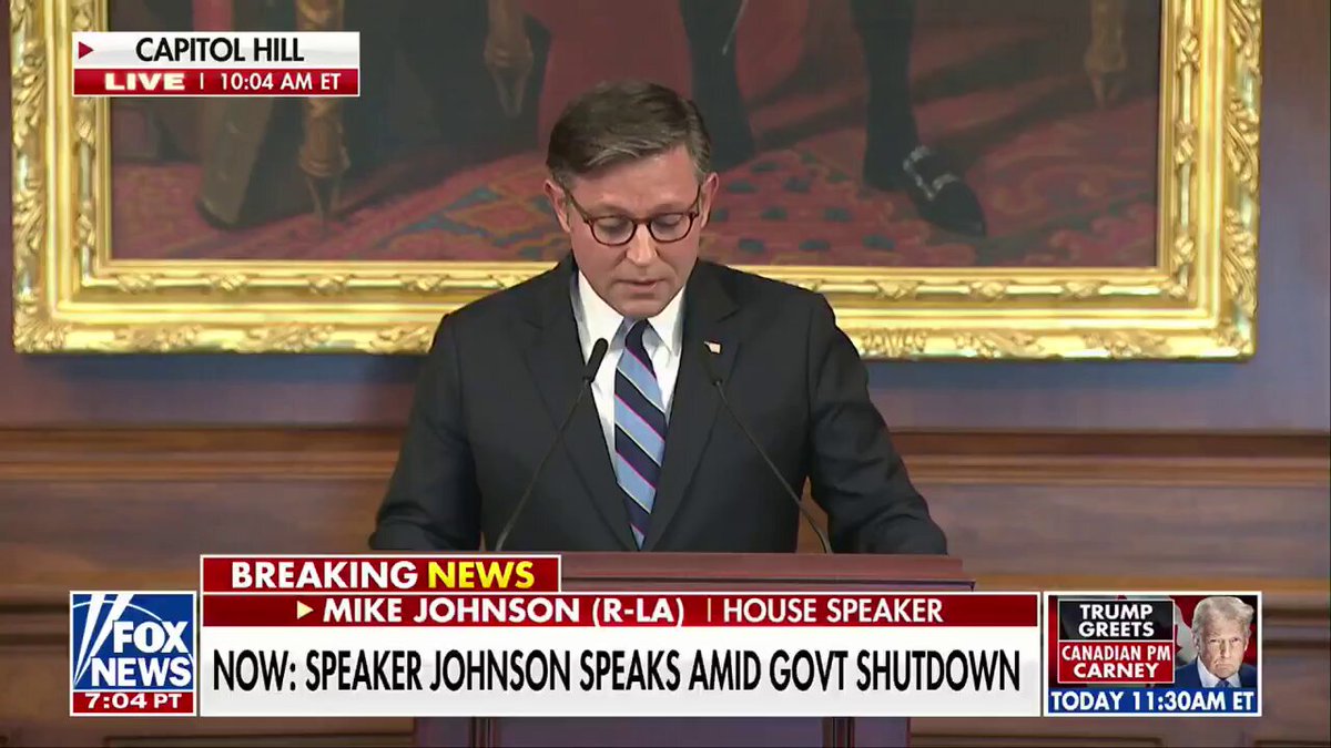 The statement addresses the economic impact of a government shutdown, highlighting the loss in GDP and the number of workers affected. It attributes the shutdown to the 'Democrat Government,' which may imply a partisan perspective.