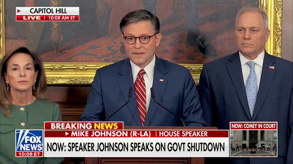 The statement criticizes the Democratic Party for allegedly politicizing the government shutdown, suggesting that it negatively impacts 'real Americans.' The tone is accusatory and partisan, aiming to place blame on a specific political group.