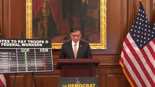 The statement criticizes Democrats for allegedly holding the government hostage, using a quote from Barack Obama to highlight perceived hypocrisy. The tone is accusatory and politically charged, aiming to highlight a partisan issue.