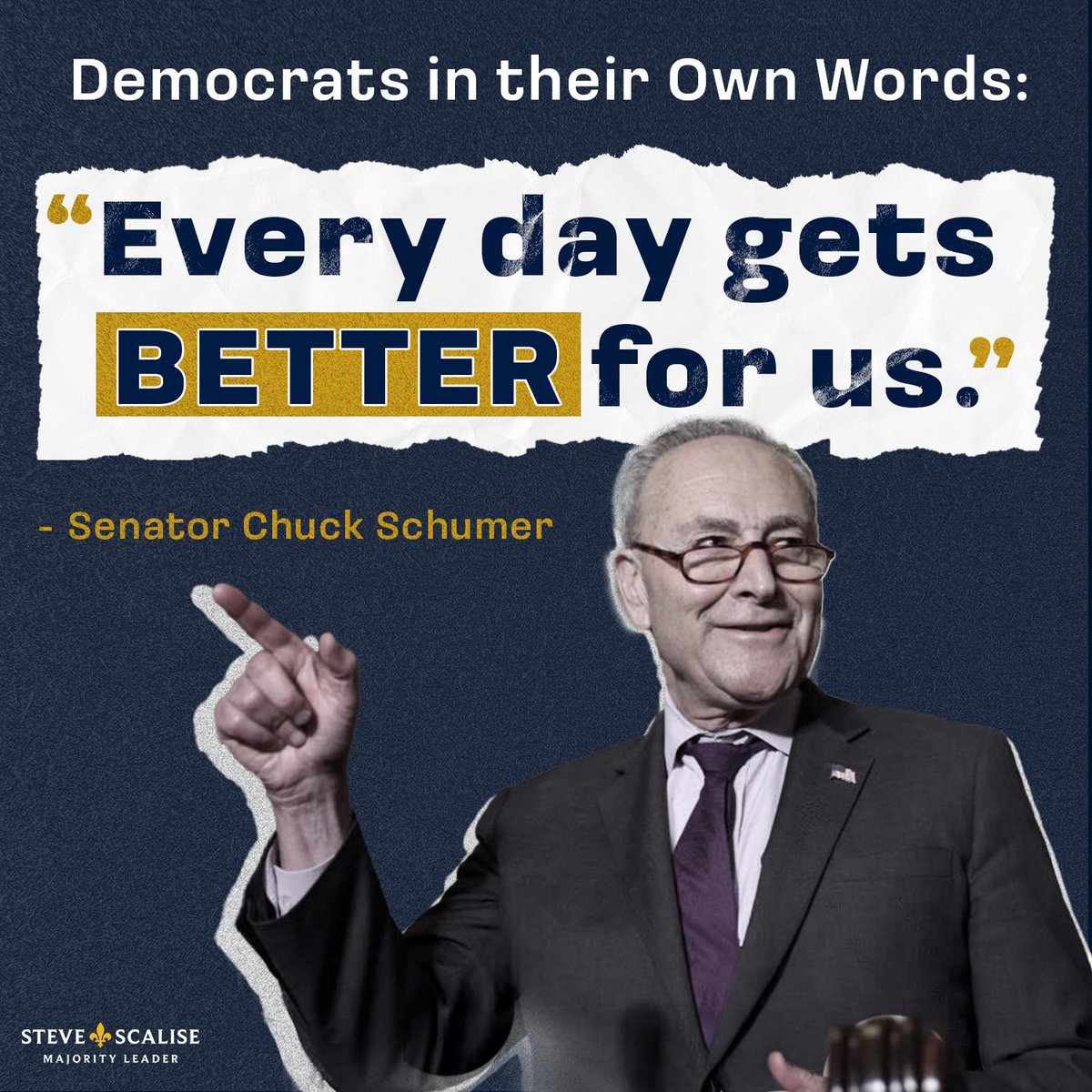 The statement criticizes Chuck Schumer by questioning his perspective on the government shutdown, implying it is not beneficial for the American people. The tone is confrontational and challenges Schumer's stance.
