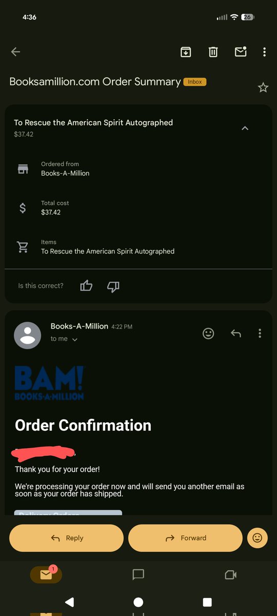The statement is part of a promotional conversation about a book purchase. It expresses excitement and gratitude related to ordering a book, without engaging in any substantive public issues or debates.