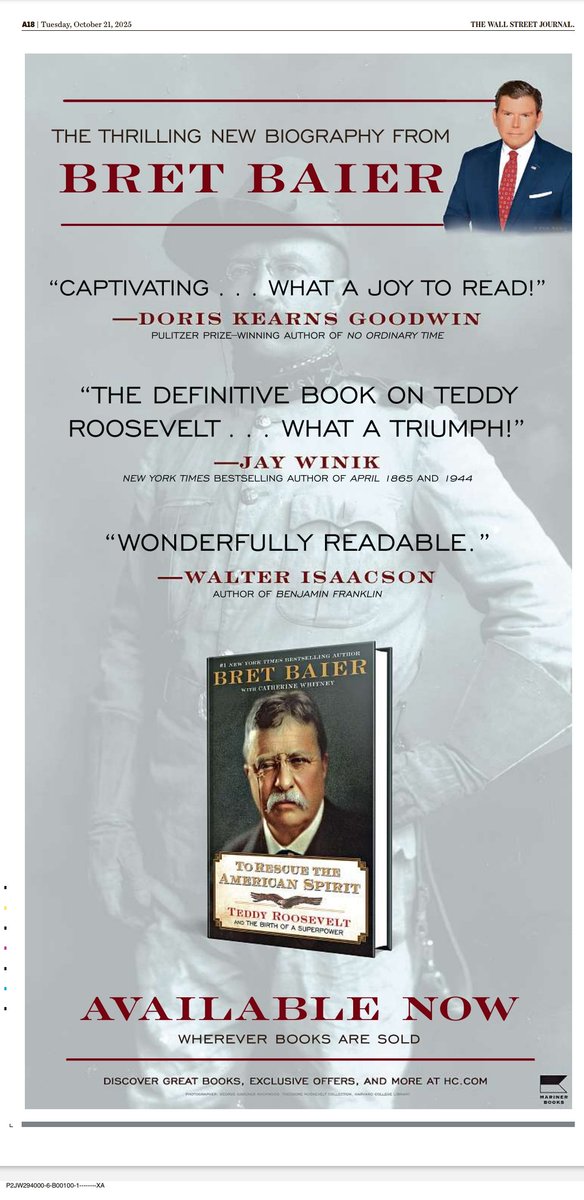 The statement is promotional, highlighting an advertisement for a book in the Wall Street Journal. It does not engage with public issues or contribute to civic dialogue.