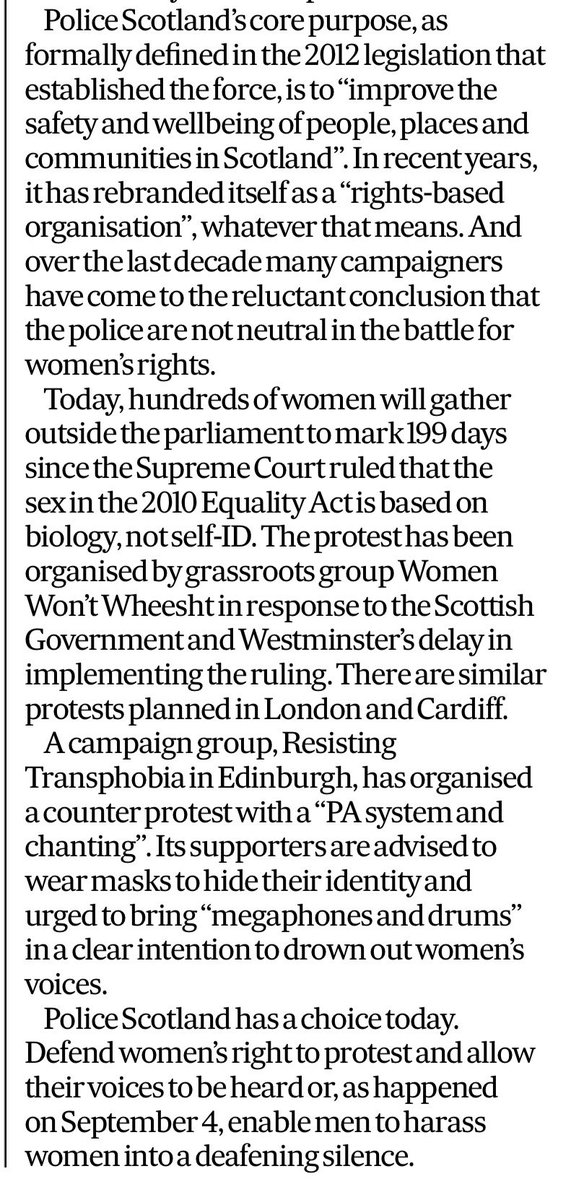 The statement addresses a public protest concerning women's rights and critiques Police Scotland's role in managing such events. It highlights concerns about gender equality and freedom of expression, questioning whether women's voices will be heard or suppressed by counter-protests. The tone is critical and advocates for the protection of women's rights to protest.