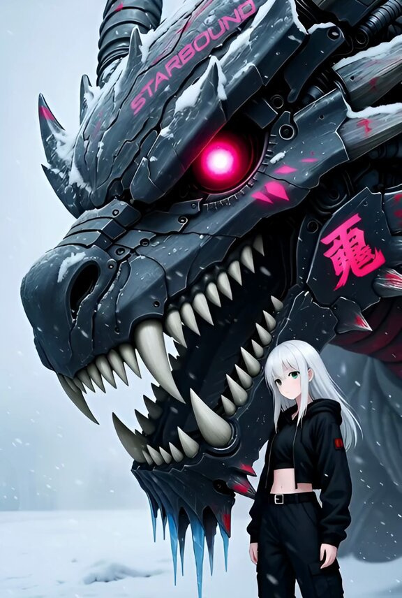 The statement is a creative prompt for generating an imaginative scene involving a biomechanical dragon and a girl. It is artistic and descriptive, focusing on visual and thematic elements.