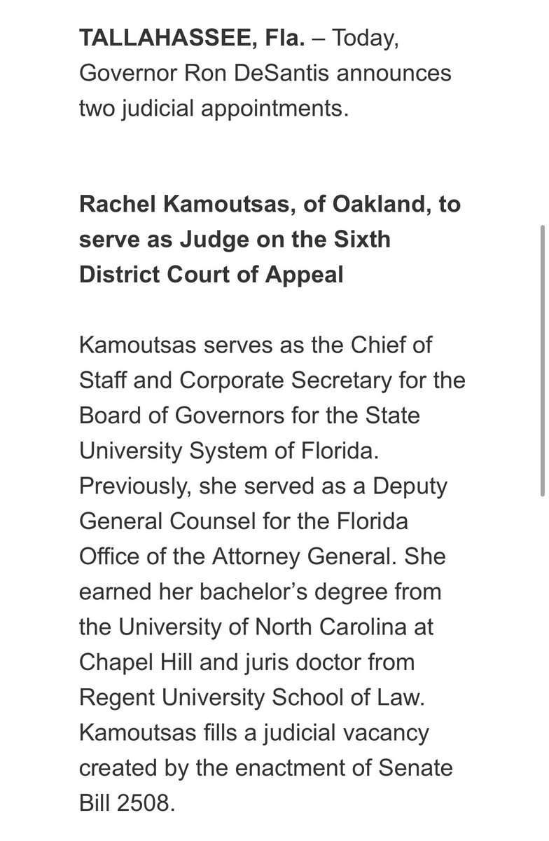 The statement is a personal congratulatory message celebrating a judicial appointment. It expresses pride and support for the individual's achievement. The content is positive and focuses on personal and professional accomplishments.