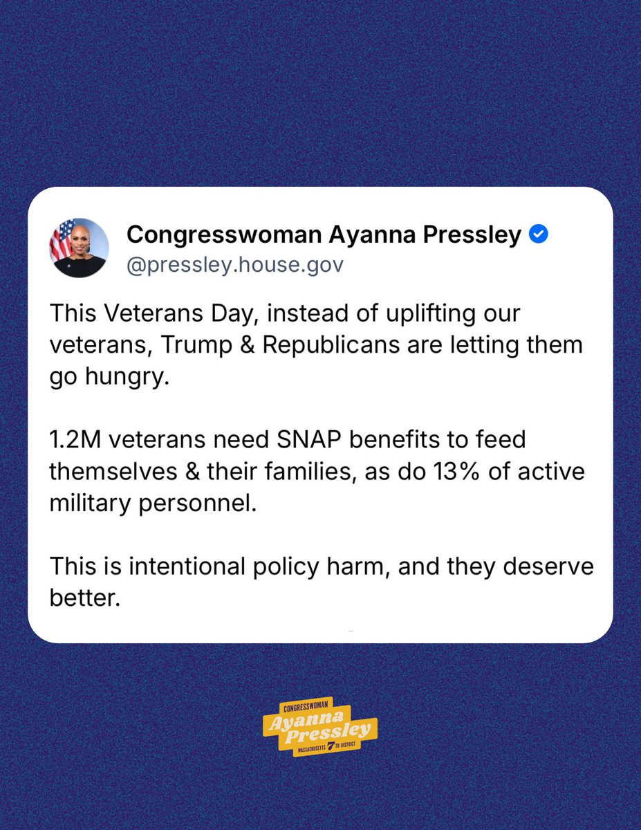 The statement and images address the issue of veteran support, criticizing specific political figures and policies for failing to provide necessary benefits. The tone is critical and calls for action to support veterans, highlighting the need for healthcare and food assistance.