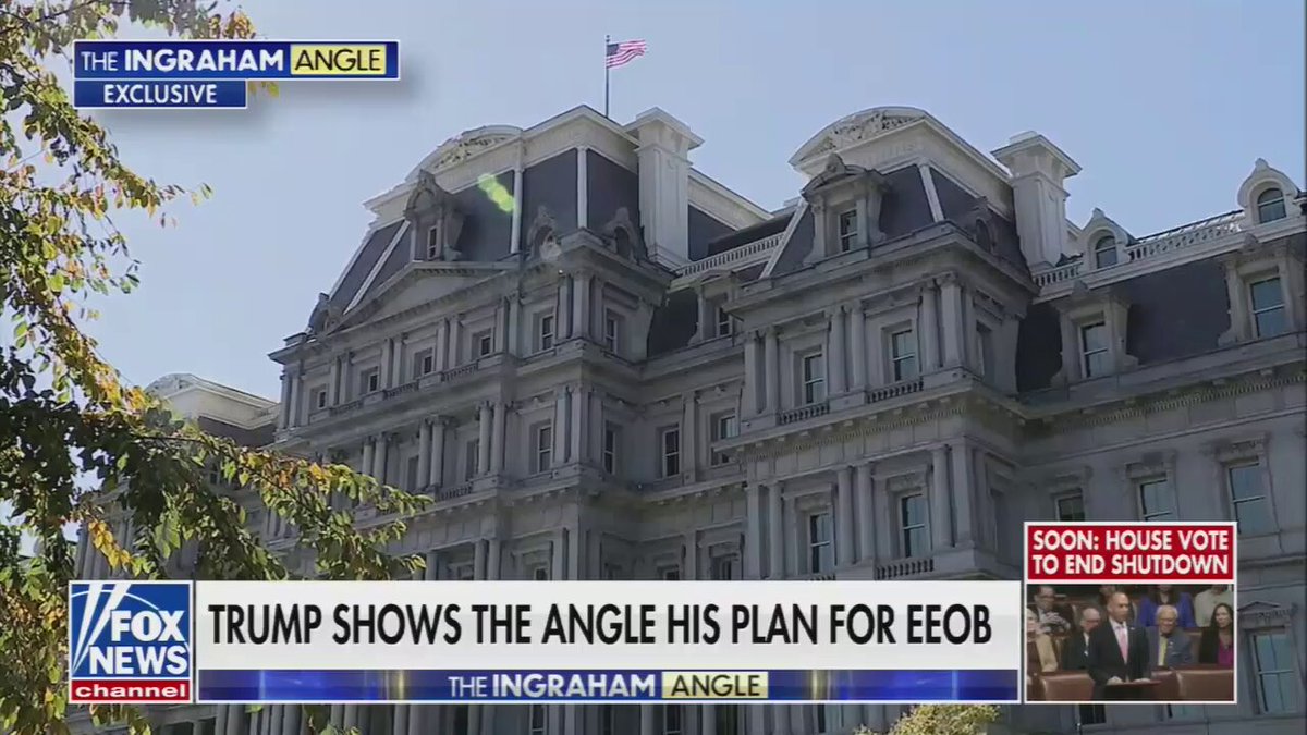 The statement criticizes Donald Trump by contrasting rising healthcare costs with his focus on redecorating the EEOB. It uses sarcasm to highlight perceived misplaced priorities.