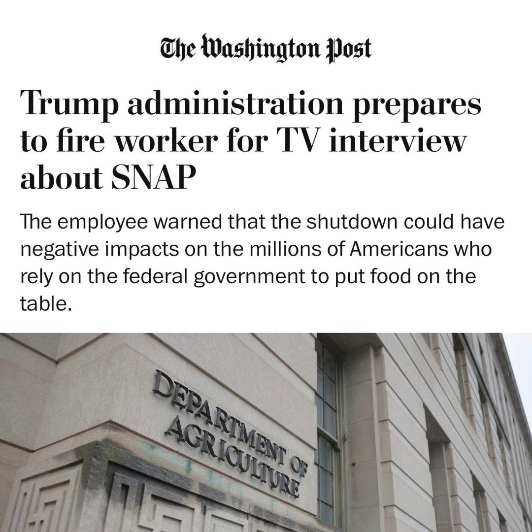The statement by @RepPressley addresses a public issue concerning the firing of a USDA worker for speaking out about the impact of a government shutdown on SNAP benefits. It criticizes the Trump administration's actions as retaliatory and a violation of free speech, calling for the worker's reinstatement.