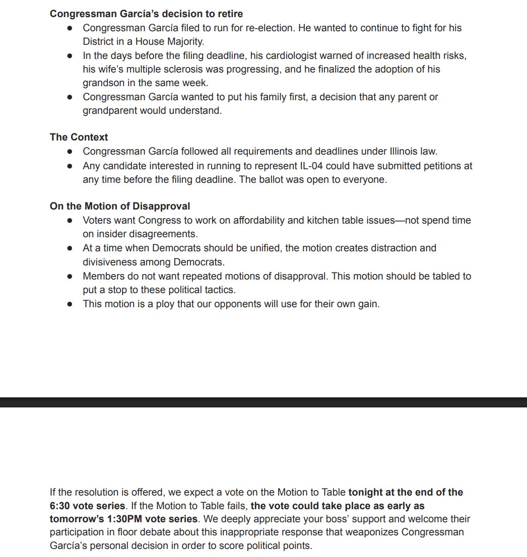 The statement critiques the timing and circumstances of Garcia's retirement announcement, suggesting manipulation to benefit his chief of staff. It uses strong language ('serious gaslighting') to emphasize perceived deceit. The statement engages in public discourse by addressing political ethics and transparency.