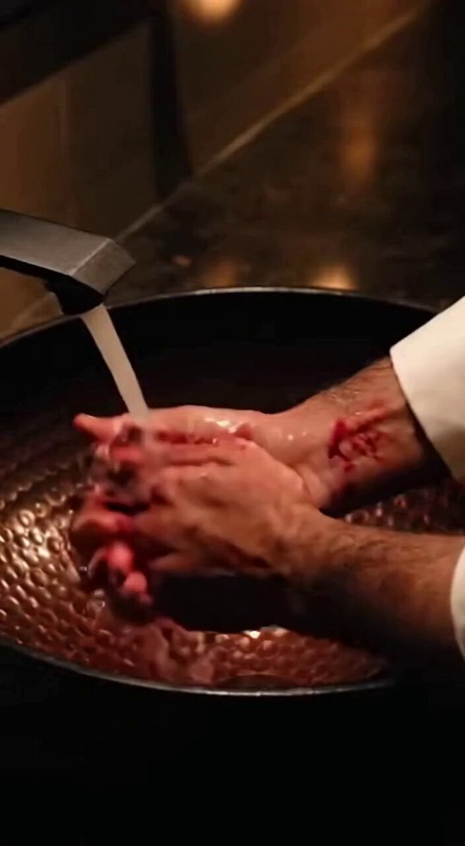 The image shows hands being washed with what appears to be blood, which could be interpreted as a metaphorical or artistic statement. Without additional context, it does not constitute public discourse as it does not engage with public issues or debates directly.